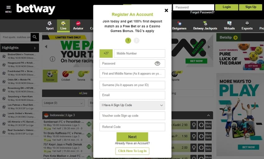 - Age Requirement: You must be 18 years or older to open a Betway account.